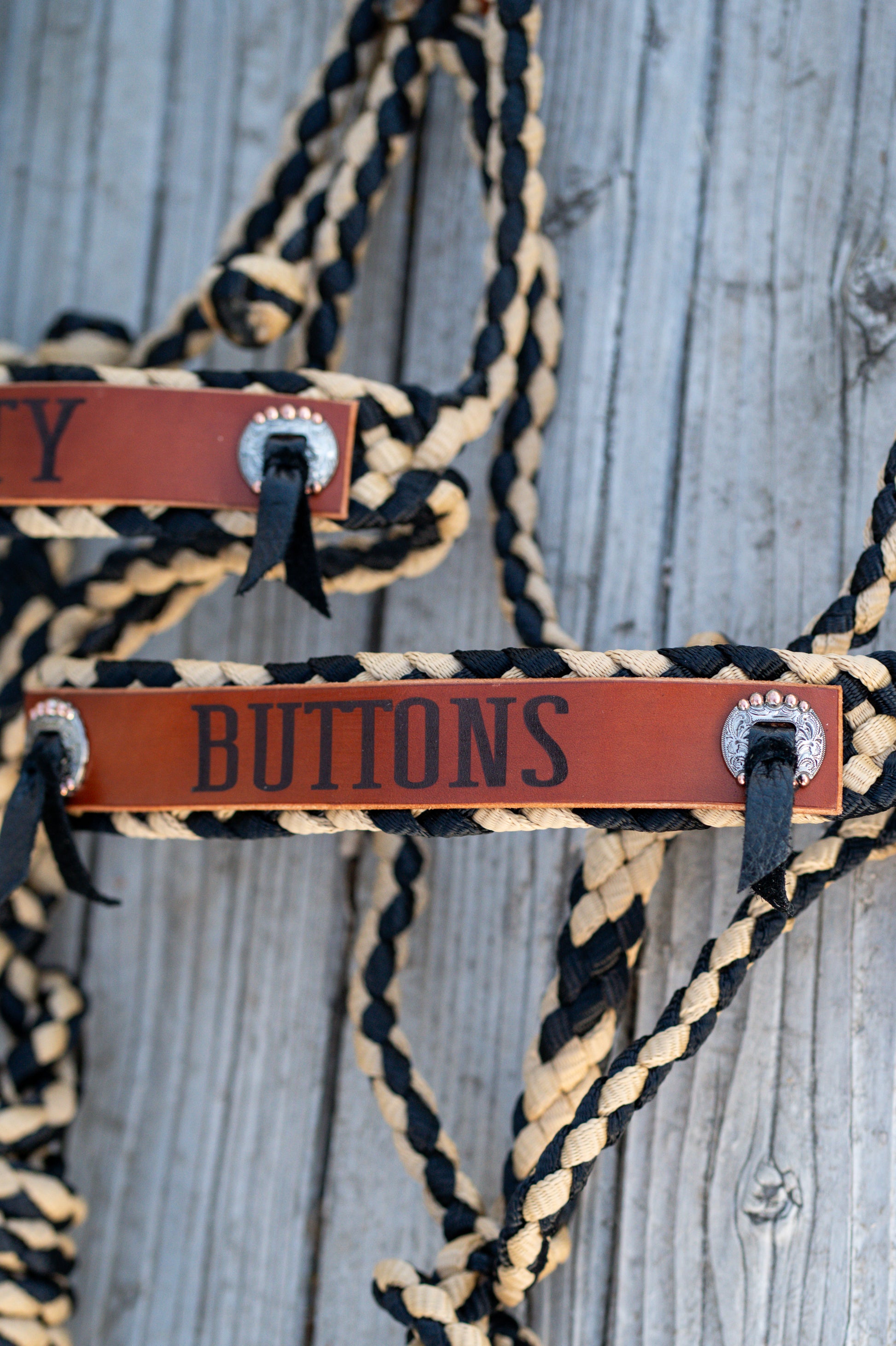 A genuine leather nose band is attached with 10 different font options available and your choice between 6 concho options.