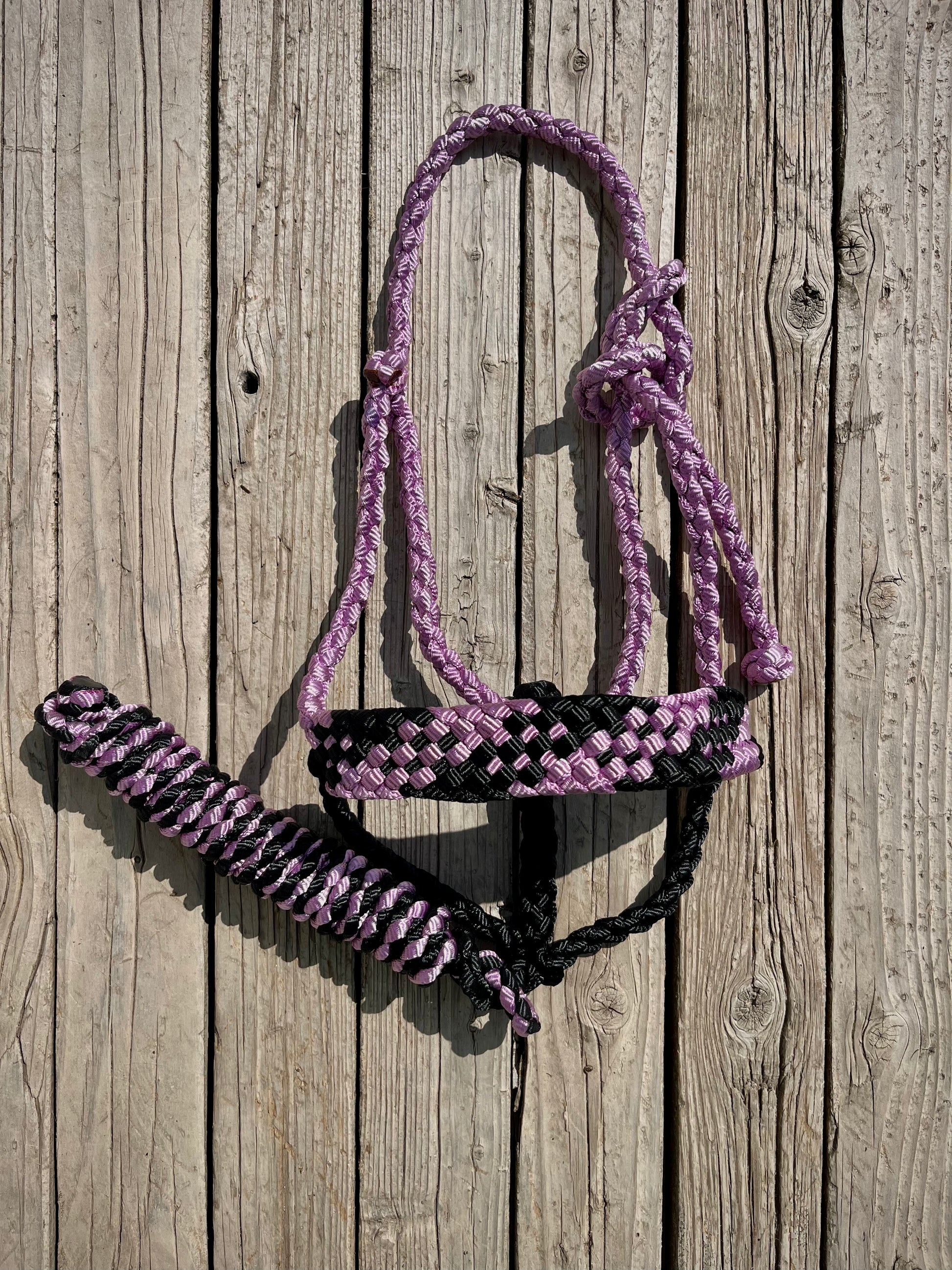 Horse size mule tape halter with matching detachable 8 ft lead rope
