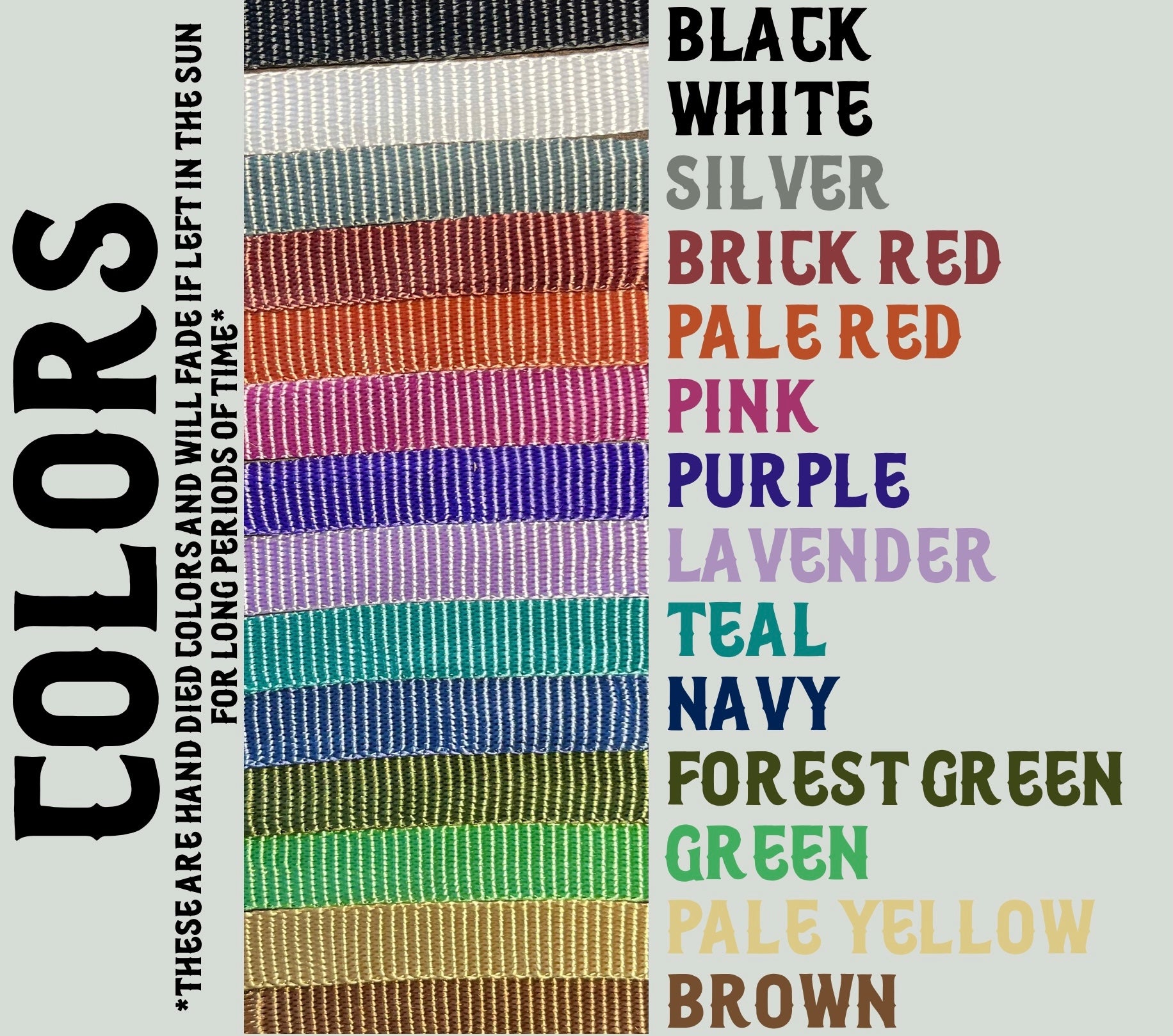 Hand braided mule tape dog collar available in 4 sizes and the option to choose between 1-4 colors