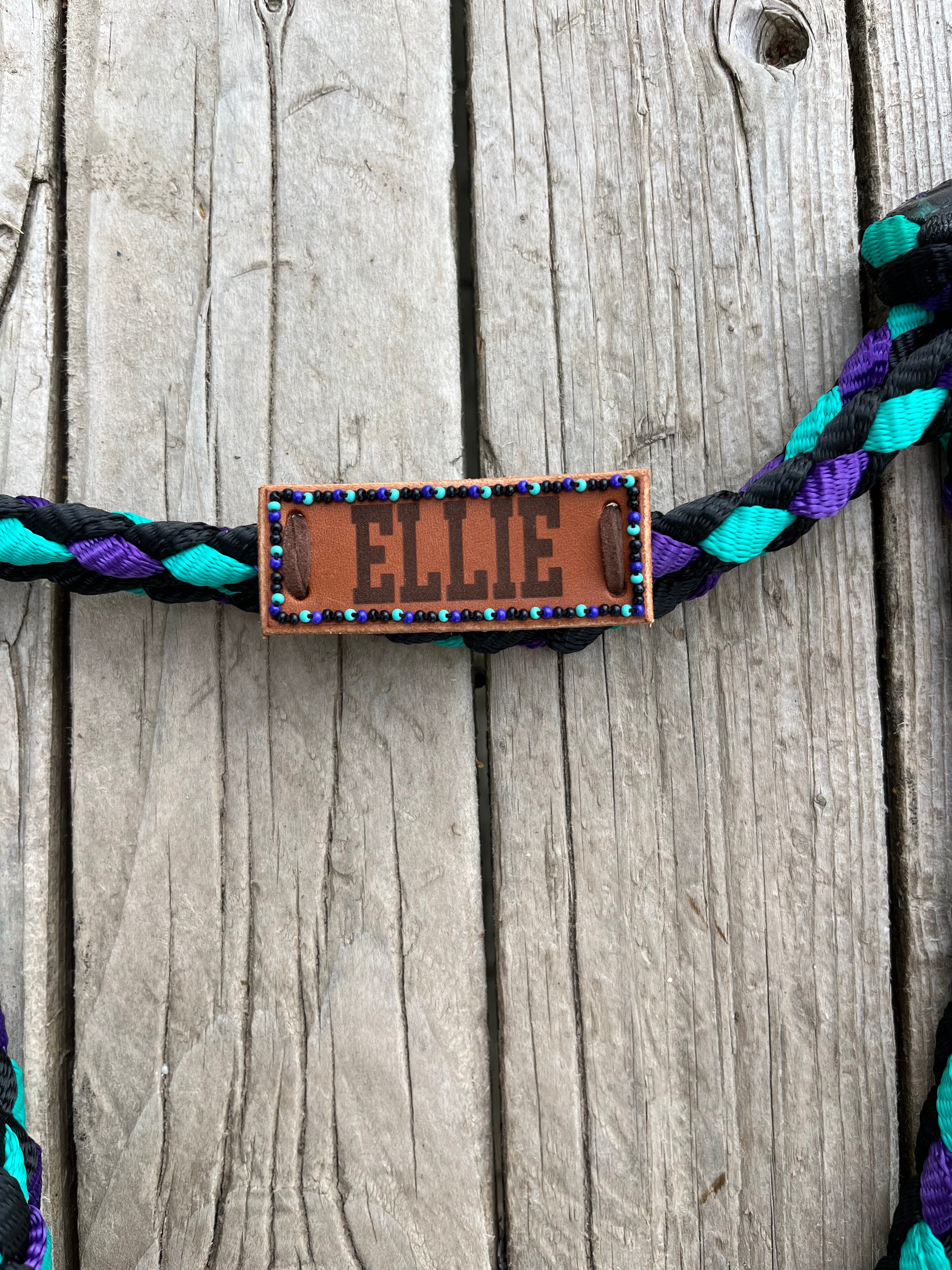 Custom Mule Tape Halter with Matching Beaded Name Tag | Sizes Mini - Draft