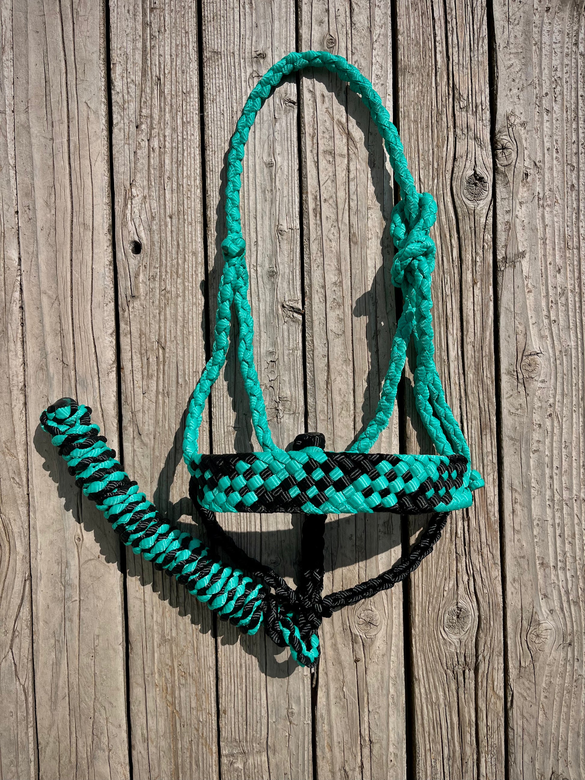 Horse size mule tape halter with matching detachable 8 ft lead rope