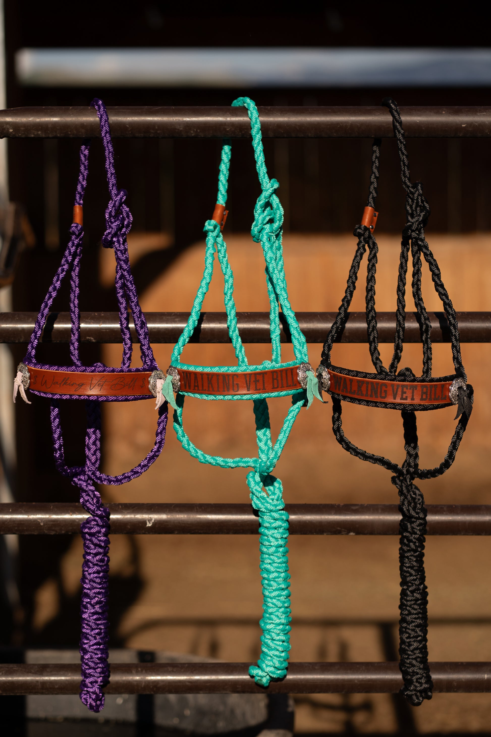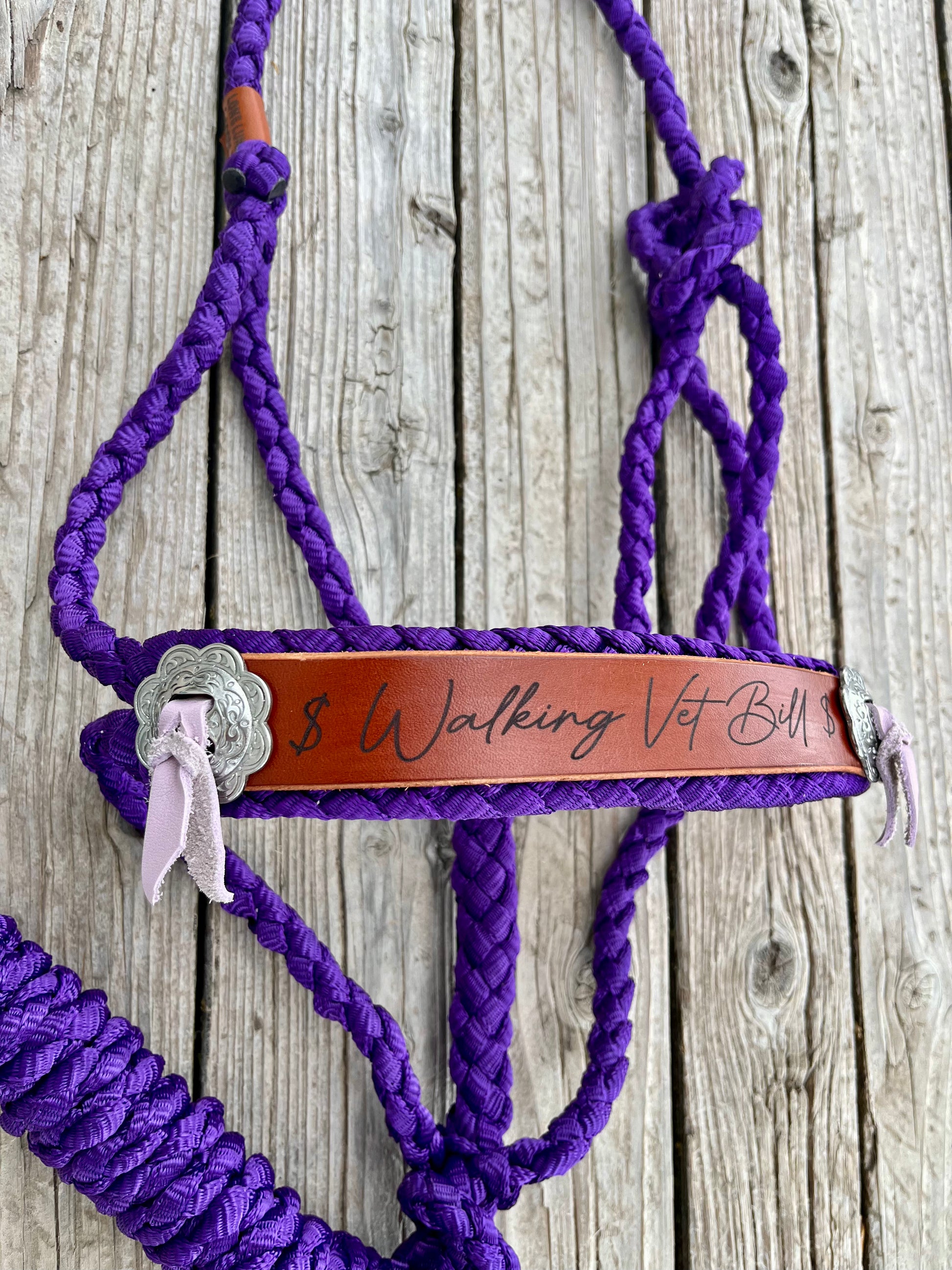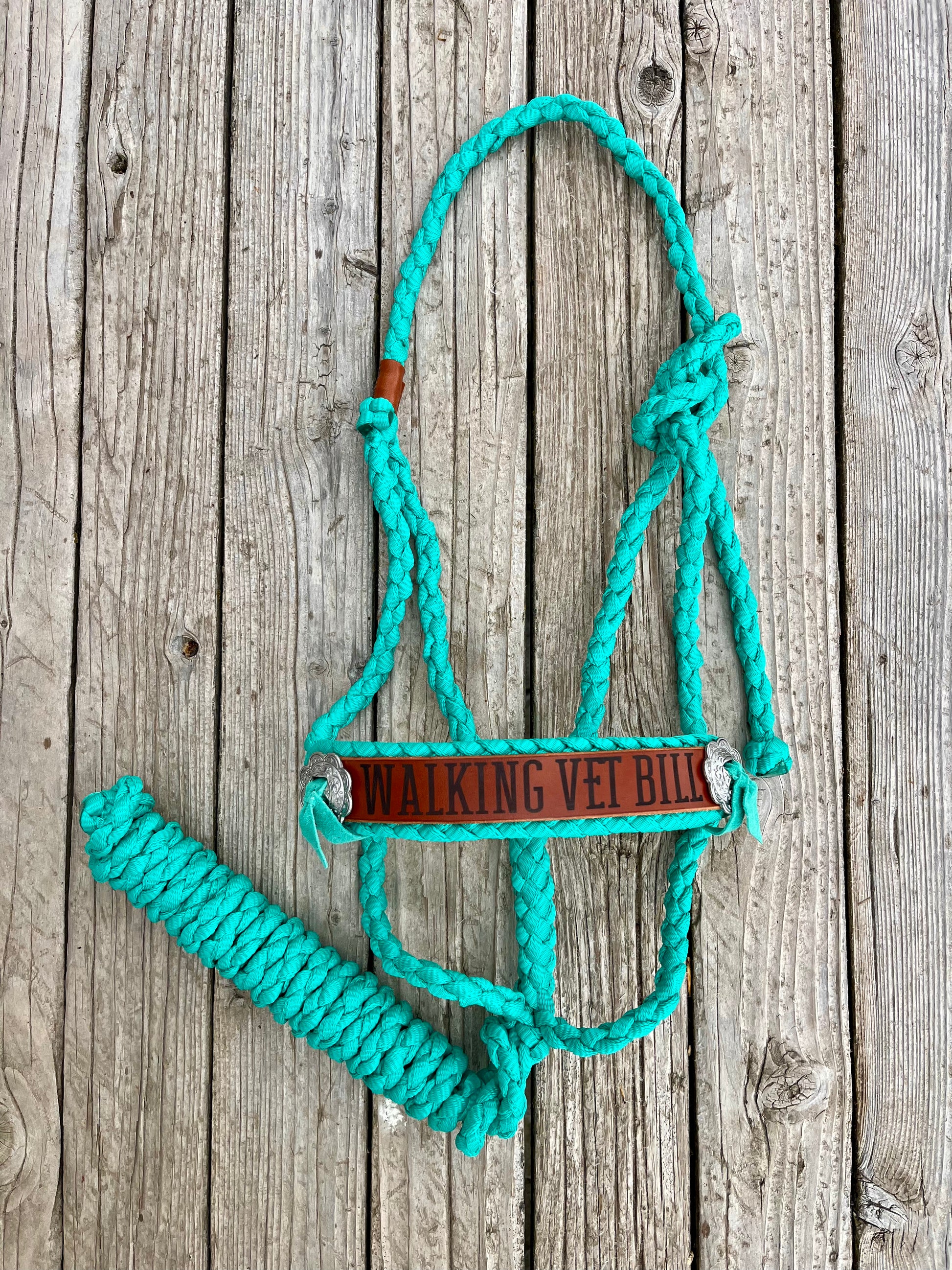 Horse size mule tape halters with matching 8ft detachable lead ropes. Nose bands are genuine leather that are laser engraved. Conchos are Jeremiah Watts brand which is known for its gorgeous hardware and durability.