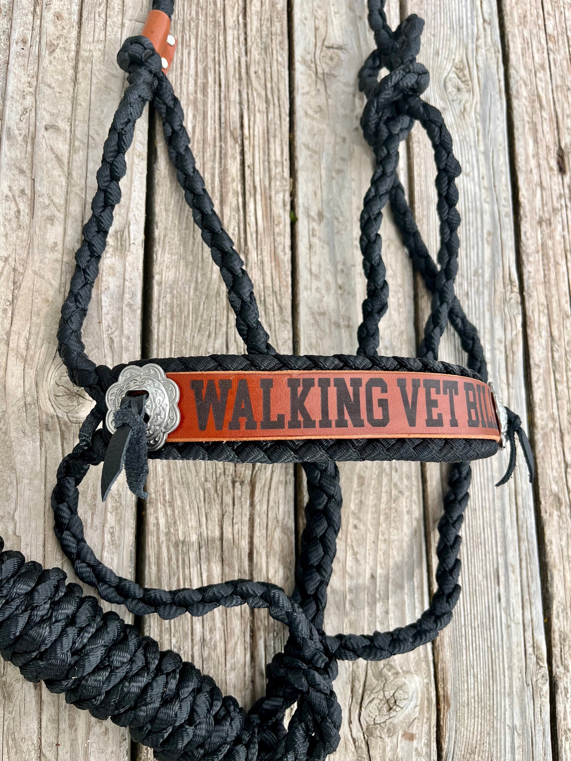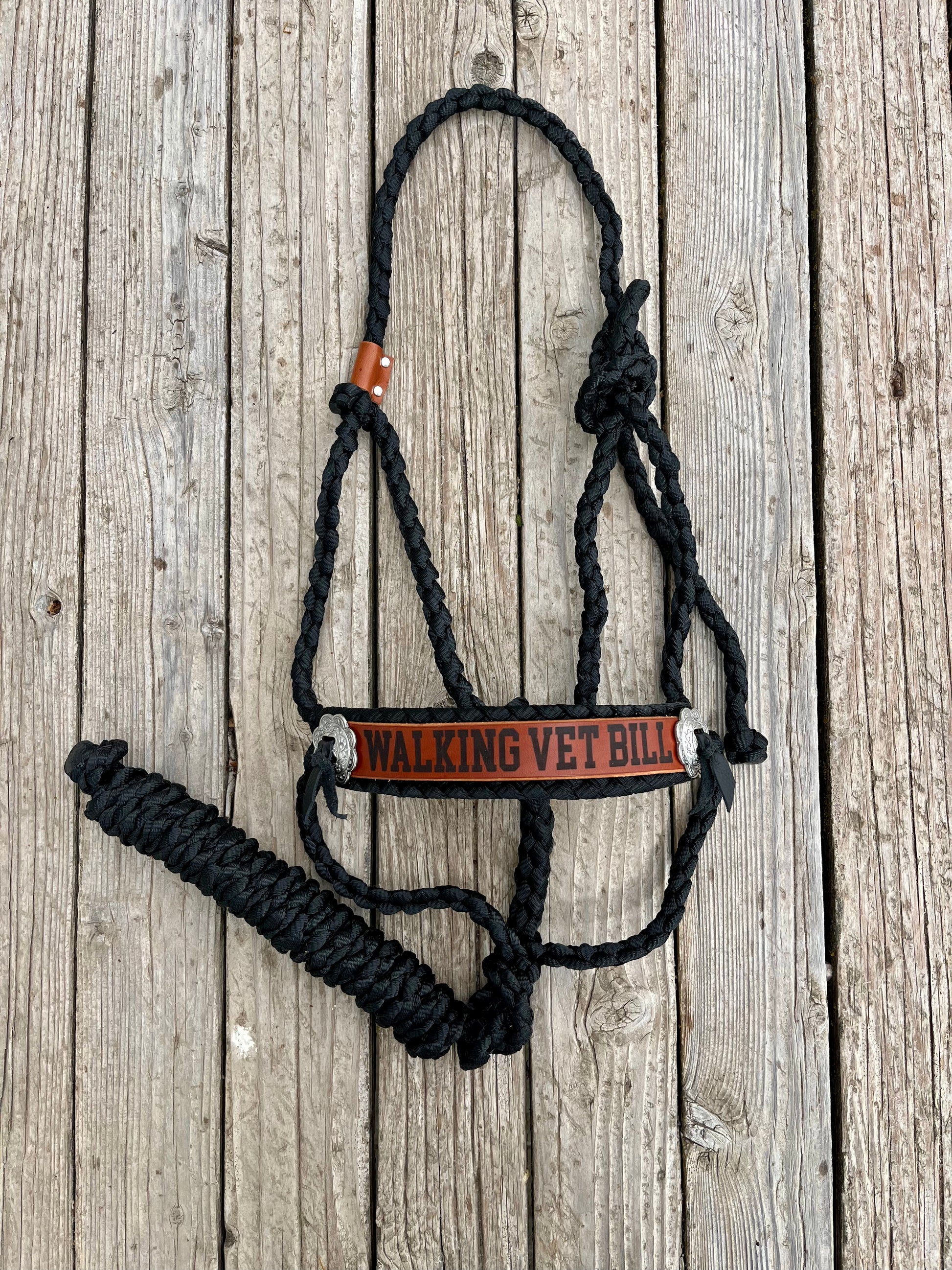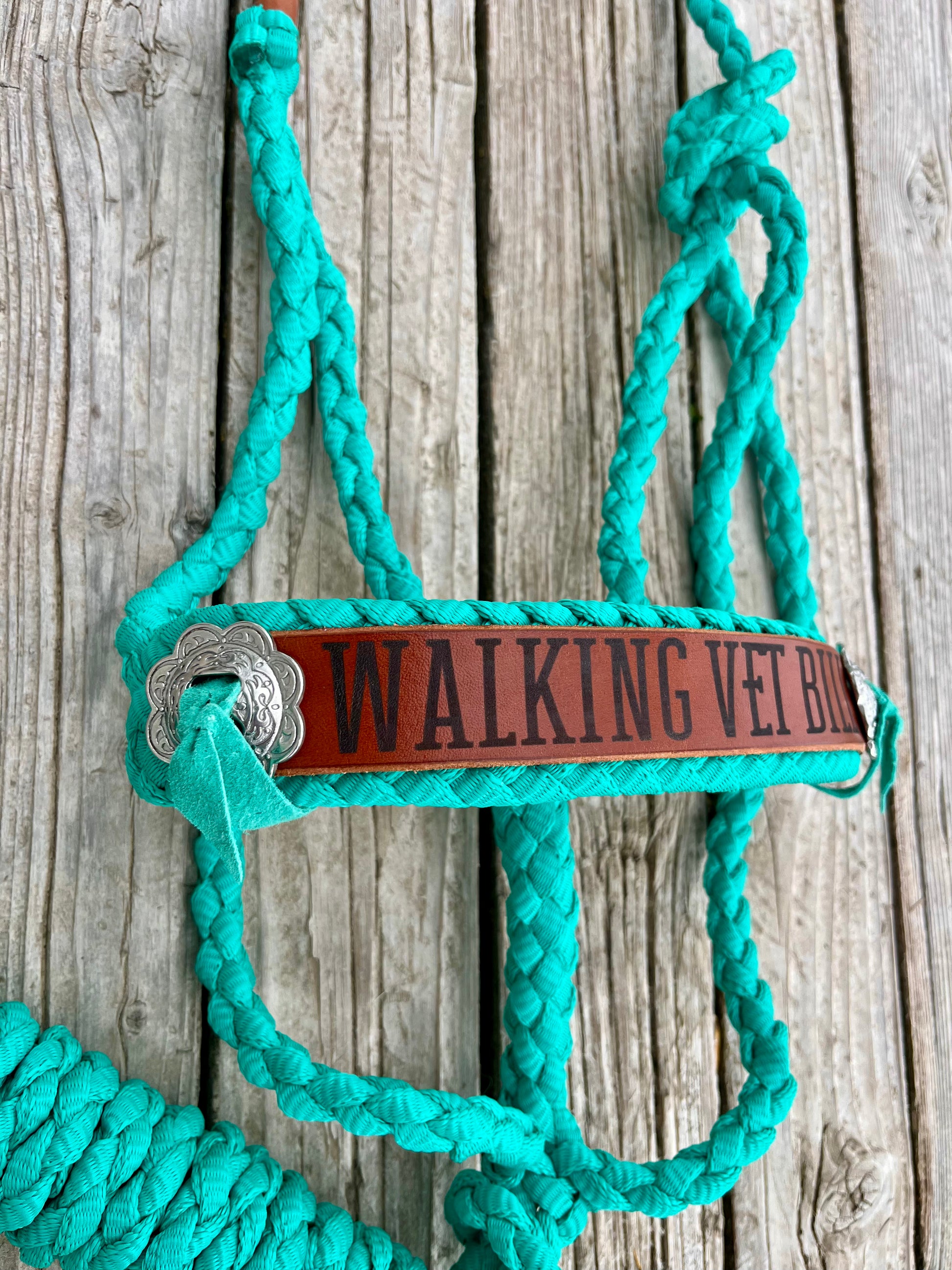 Horse size mule tape halters with matching 8ft detachable lead ropes. Nose bands are genuine leather that are laser engraved. Conchos are Jeremiah Watts brand which is known for its gorgeous hardware and durability.